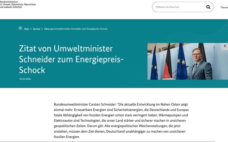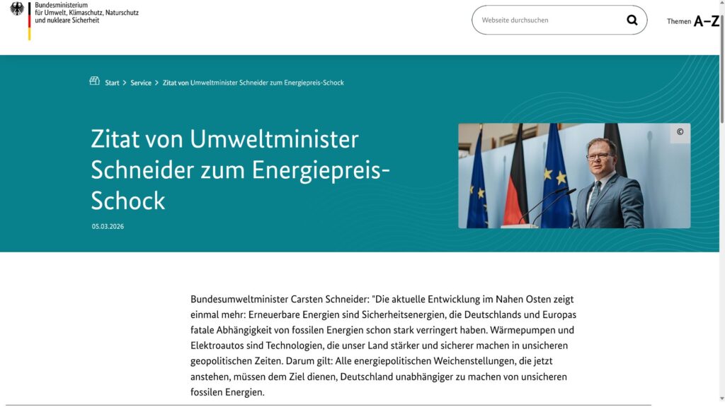 Das „Zitat von Umweltminister Schneider zum Energiepreis-Schock“ auf der Seite des BMUKN lautet: