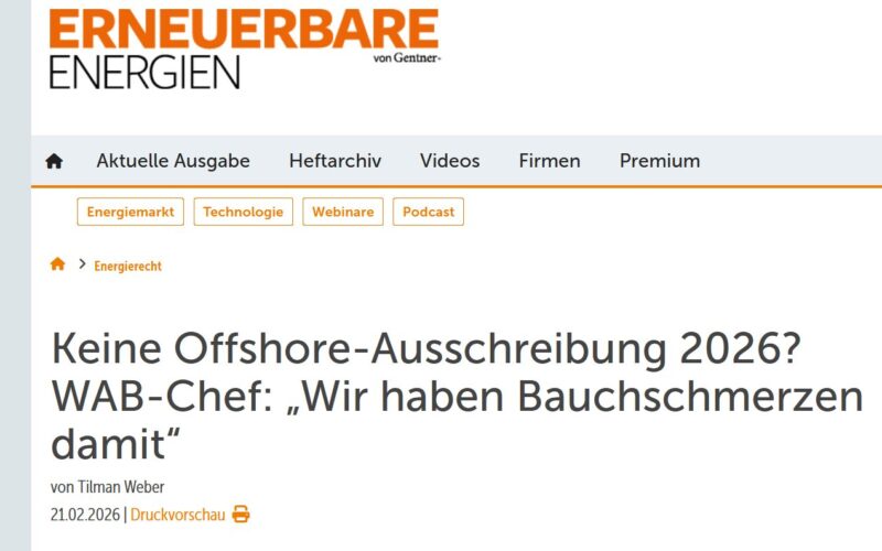 Aufrufe 23 Auf der interessanten Website Erneuerbare Energien heißt es in Tilman Webers Beitrag vom 22. März 2026: „Die Reform des WindSeeG steht an, weil die vorherigen Ausschreibungen mit sogenannten Negativgeboten zuletzt an komplett ausbleibenden Geboten von Investoren oder Projektierern scheiterten, die für das Entwicklungsrecht eines Windparks anders als noch